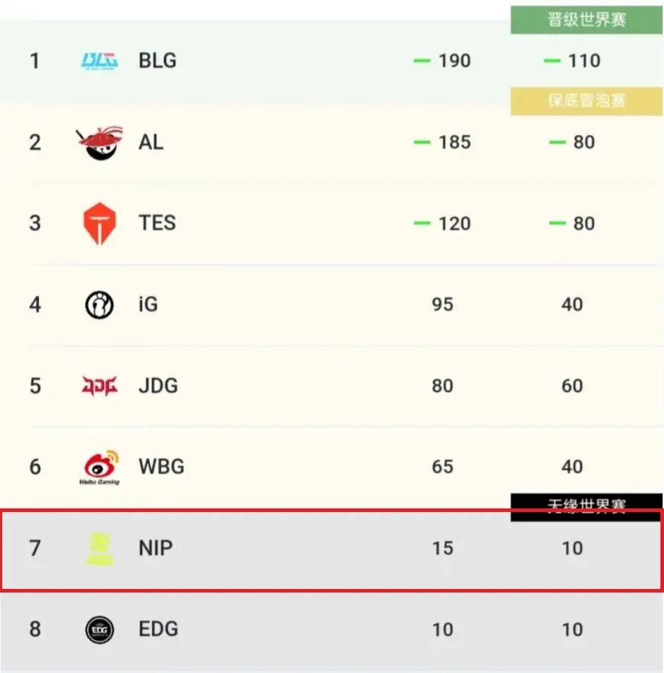 然后LPL已经有一支队伍确定在邀请行列,就是Doinb所在的NIP,全年积分排名第七的队伍,剩下两支队伍还得在后面决出来。