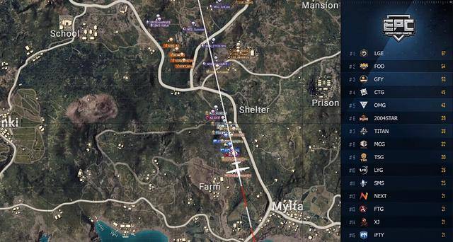 比赛一开始,IFTY和MJ两支战队落在了同一个房区,八人十分分散,MJ的970选手和IFTY二人组抢车,MJ的SR选手则是厕所碰了一波运气找枪,在IFTY和XJ两队落地后,小九凭借着优秀的跳伞技术,率先一步抢到了车辆,并成功逼退了XJ的970选手,不过等小9叫上队友向大房区撤离的时候,XJ这边的SR选手运气爆表,在小厕所里捡到了一把m4加上4倍镜,虽然子弹不多,但是打无甲的IFTY一行人几乎没有什么问题,一梭子中距离压枪,在IFTY三人脱出视野的最后一刻给以身法灵巧著称的TangDD选手打下了车来。